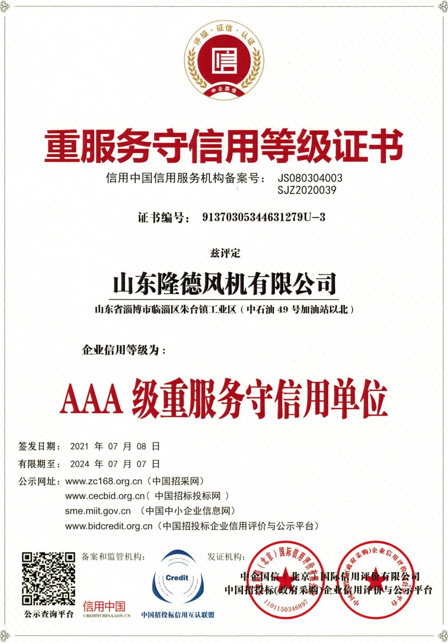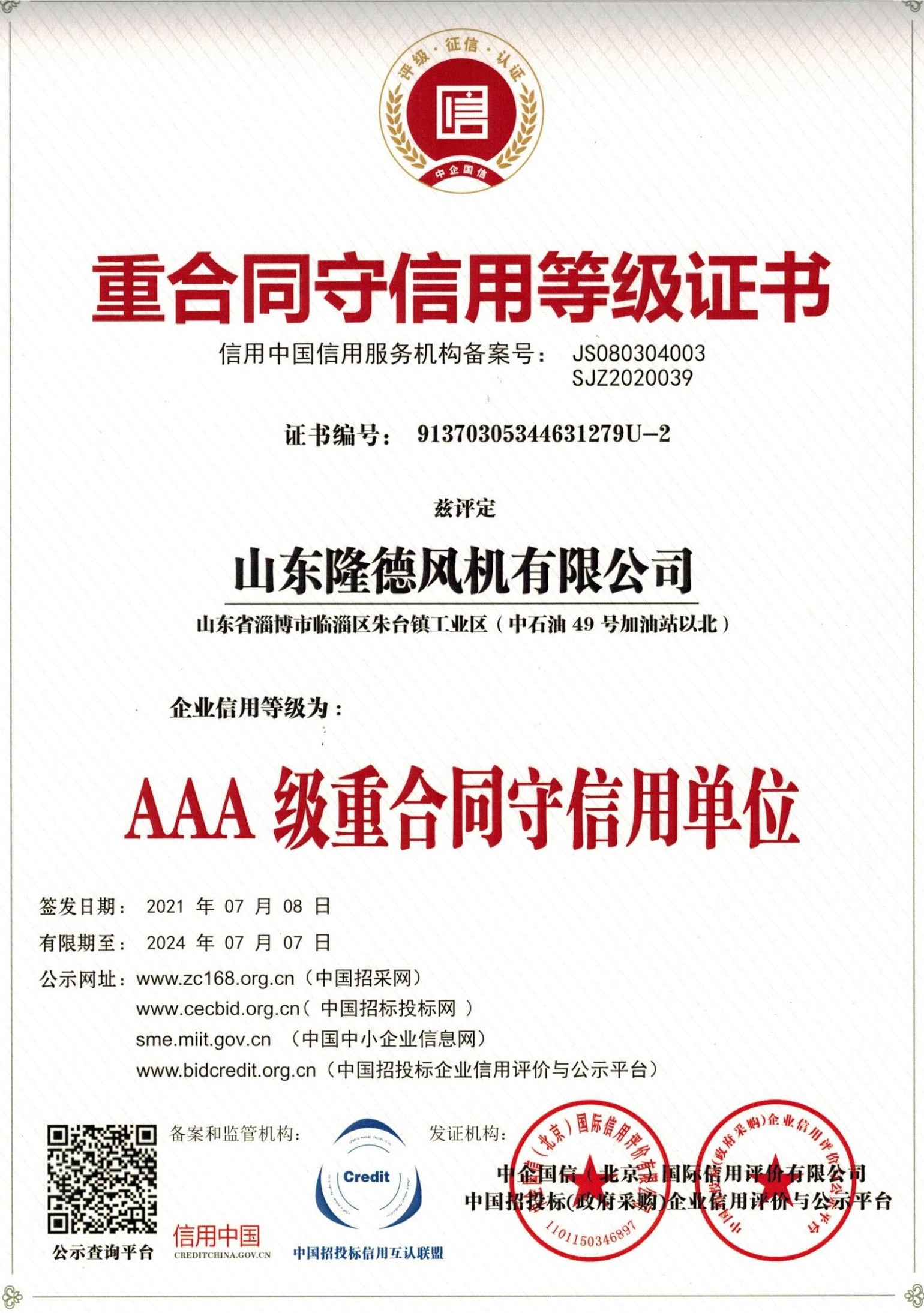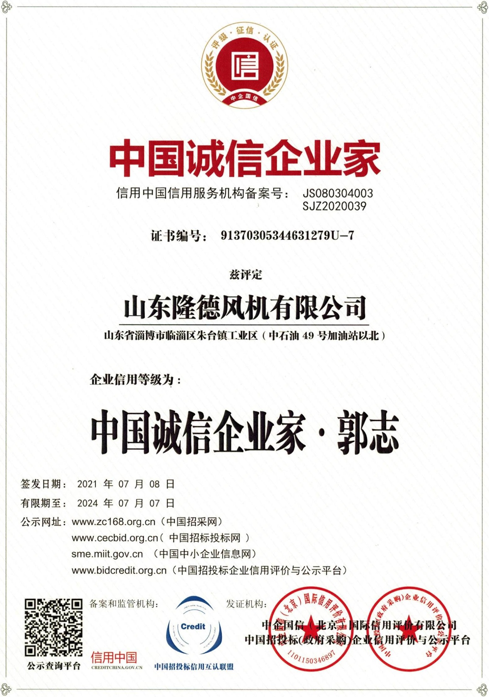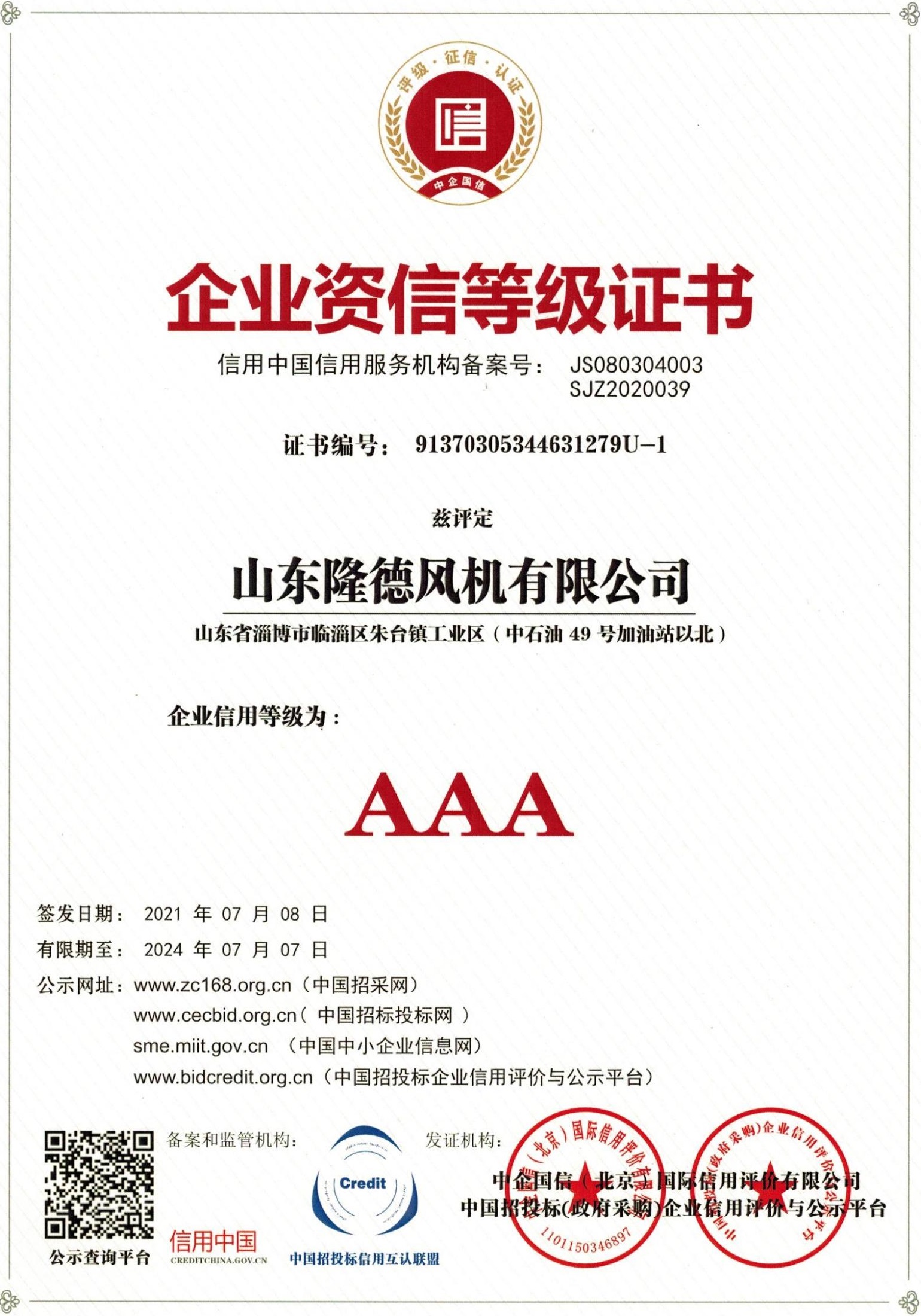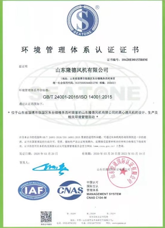企业资质表示隆德风机的经营管理已经达到了国际标准,是隆德履约能力、投标信誉、竞争力的综合体现。它表明隆德风机能够向客户稳定提供可持续、高品质、可信赖的产品和服务。