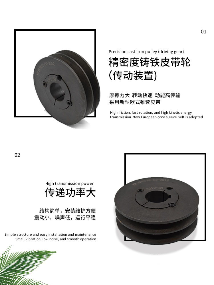 【轴 承】专用轴承,加大了轴承和主轴的型号,增加了轴和轴承的承载力;全部采用欧式皮带轮,拆装方便,维护便捷;